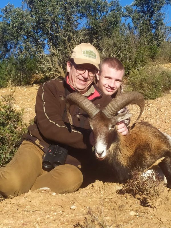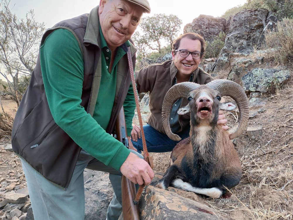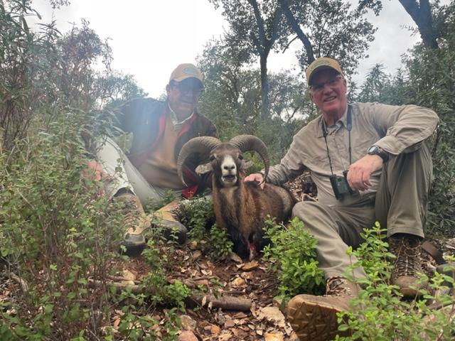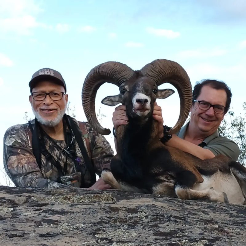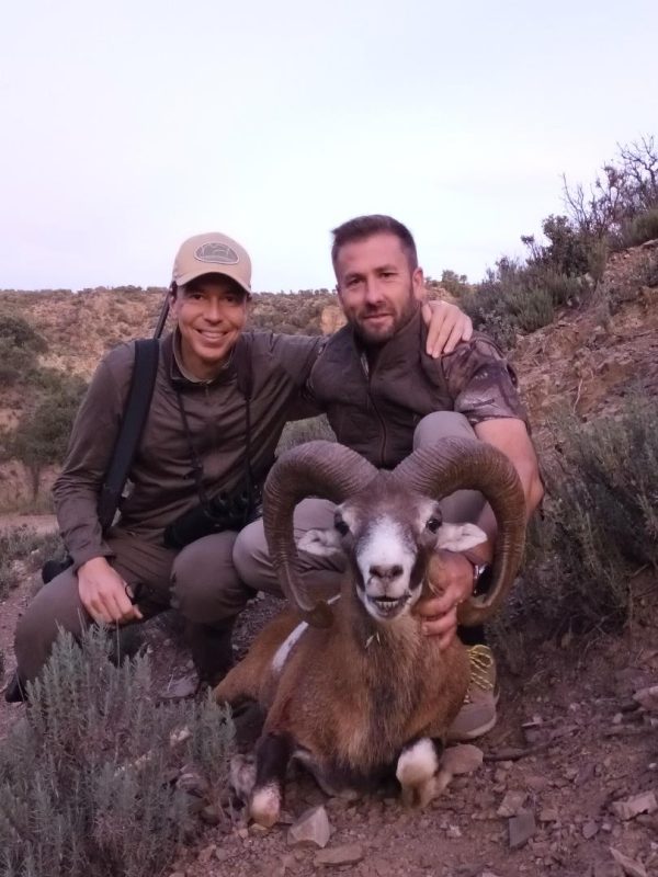 One of the world’s smallest wild sheep, resembling a slim domestic sheep except that it has a normal coat of hair, any wool being concealed beneath. Upper parts are reddish-brown with a pale (almost white) saddle patch in the winter coat. Underparts, rump, lower legs and muzzle are white. There is dark neck ruff but no bib. The horns usually grow in a tight circle, with the tips turned inward toward the face and broomed back to about a three-quarter curl. In a purebred European mouflon, the tip-to-tip spread should not be the widest spread. Females sometimes grow small horns, but usually do not.